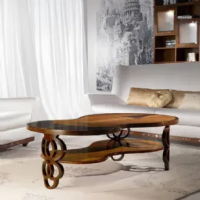 Non vi è nulla da fare: il tavolino da salotto classico evoca il lusso. Un bel tavolino intagliato a mano, con finiture anticate magari con motivi floreali, non è da tutti, è un complemento davvero esclusivo. Ovviamente l’arredamento classico, prezioso e costoso, è meno in linea con i nostri tempi, anche se gli ebanisti e gli intagliatori italiani da sempre sono i migliori al mondo e le aziende che producono arredi classici sono adorate all’estero. Ma un tavolino classico nel bel mezzo di uno stile d’arredo super moderno fa colpo ed è notevole. Come il tavolino musicale Pois della storica azienda Carpanelli, la cui la linea richiama la forma di un contrabbasso. Il piano è in ebano e piuma di cerejeira con inserti in ottone che ricordano le “corde” dello strumento. Lo spessore del piano ha un’importante filettatura in palissandro. In palissandro anche le tre gambe di appoggio, caratterizzate da una lavorazione ad anelli bombati. In foto, tavolino Pois di Carpanelli