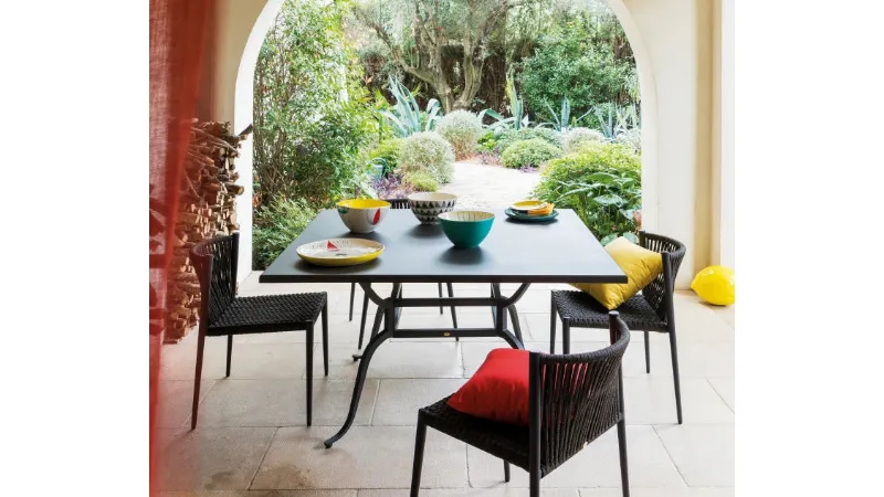 L’alluminio sta scalando la classifica dei materiali più utilizzato nel settore dell’arredo giardino perché si lavora con estrema facilità, quindi non impone particolari limiti in fatto di design, e può essere trattato con diverse tecniche innovative. E’ inoltre molto resistente alla corrosione, non è tossico, è insolubile e non è magnetico. In più, essendo disponibile in abbondanza non risulta molto costoso e si presta perfettamente ad abbinamenti con altri materiali, anche di natura del tutto differente. In foto un esempio relativo alla collezione Luce di Unopiù: le strutture sono realizzate in tubolare di alluminio, gli schienali e i braccioli delle sedie sono rivestiti in corda poliolefinica incordata a mano. Per il 2018 la linea è stata arricchita con sgabelli, nuovi tavoli e sedie impilabili.