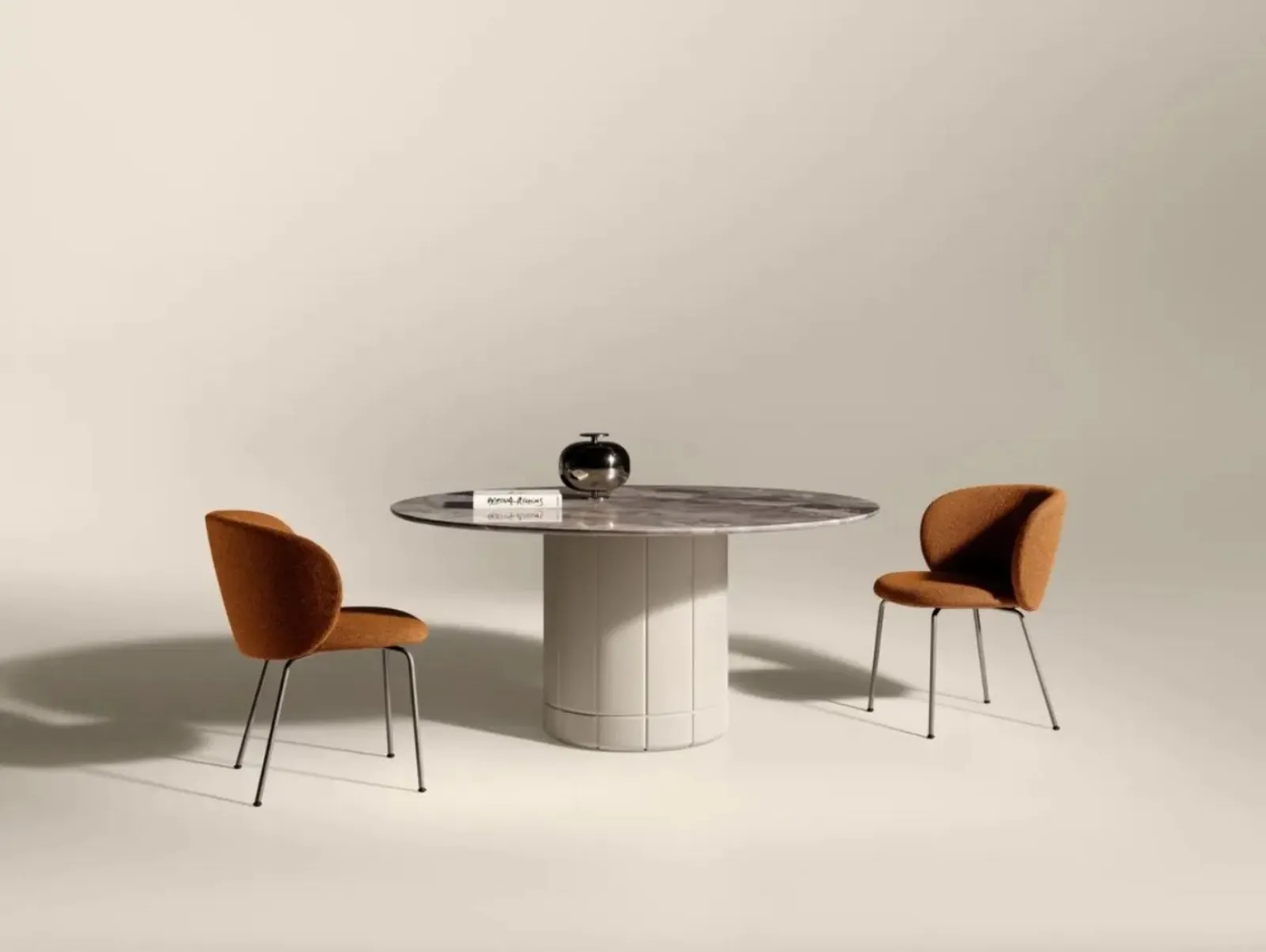 Il tavolo da pranzo rotondo è una scelta eccellente per facilitare il transito all'interno della stanza; in un ambiente dalla geometria regolare, può essere posizionato al centro della stanza o in un angolo. La mancanza di spigoli consente ai commensali di sedersi liberamente, promuovendo un'atmosfera informale e conviviale.
