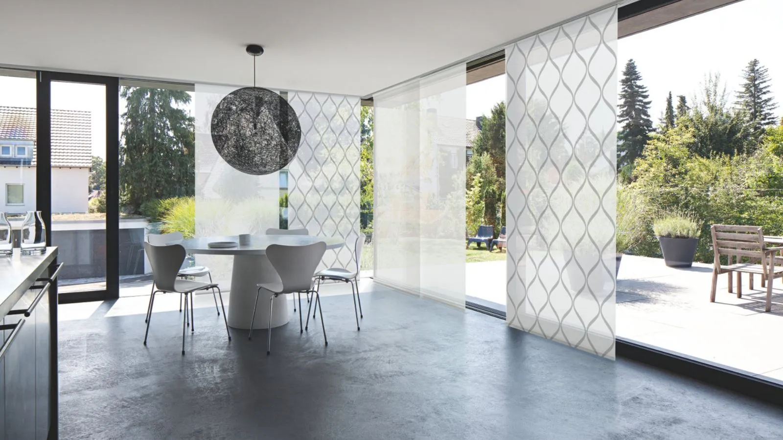 - Le tende a pannello conferiscono una sensazione di ordine in qualsiasi stanza. Sono ideali per grandi vetrate e ambienti moderni.