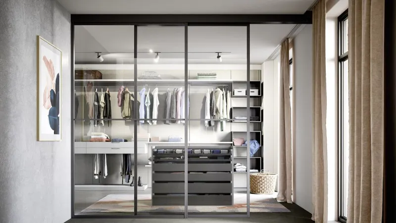Walk-in Fluida di Scavolini fa parte di una nuova collezione di moduli per la zona notte: versatili, funzionali e altamente personalizzabili. A completare il programma, sono disponibili tre linee di accessori interni che rappresentano perfetti alleati di arredo: la linea Comfort, con finitura color Moka, Support con finitura colore Metal Grey e la linea Assist, disponibile nei 5 colori della struttura Walk-in Fluida.