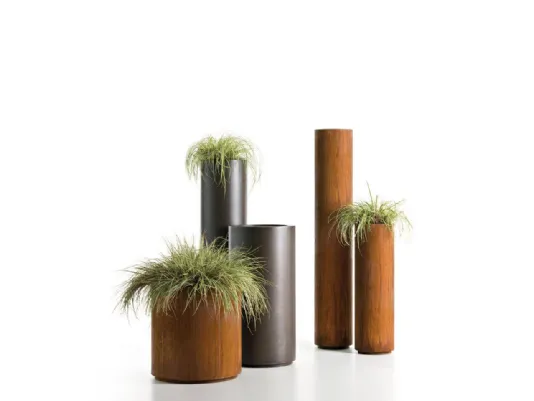 Che siano in terracotta, in cemento o in plastica, i vasi da giardino devono garantire una lunga durata e la resistenza ai fenomeni atmosferici. Ultimamente se sono anche di design, sono ancora più apprezzati dagli utenti che li usano per arredare i giardini o i terrazzi. Le loro dimensioni sono determinanti per la crescita delle piante che andranno a contenere: un vaso piccolo, per una pianta che necessita di spazio per la crescita, può provocarne il deterioramento, così pure la scelta di un vaso in plastica, in terracotta o altri materiali muta considerevolmente il risultato finale. Ad esempio vaso in plastica, specialmente se esposto a sud, e quindi a un irraggiamento nelle ore più afose del giorno, non essendo un materiale traspirante, potrebbe sottoporre la pianta a un continuo stato di umidità, che potrebbe nuocere alla fioritura. In questo caso, dunque è auspicabile l’impiego di un materiale non sintetico, come la terracotta per esempio. In foto, vasi da giardino De Castelli modello Cohiba. Grazie all'originalità dei progetti e all'abilità degli artigiani impiegati, la produzione di De Castelli sa coniugare design, arte e artigianato, sia che si tratti di ferro, che di acciaio corten o di acciaio inox.